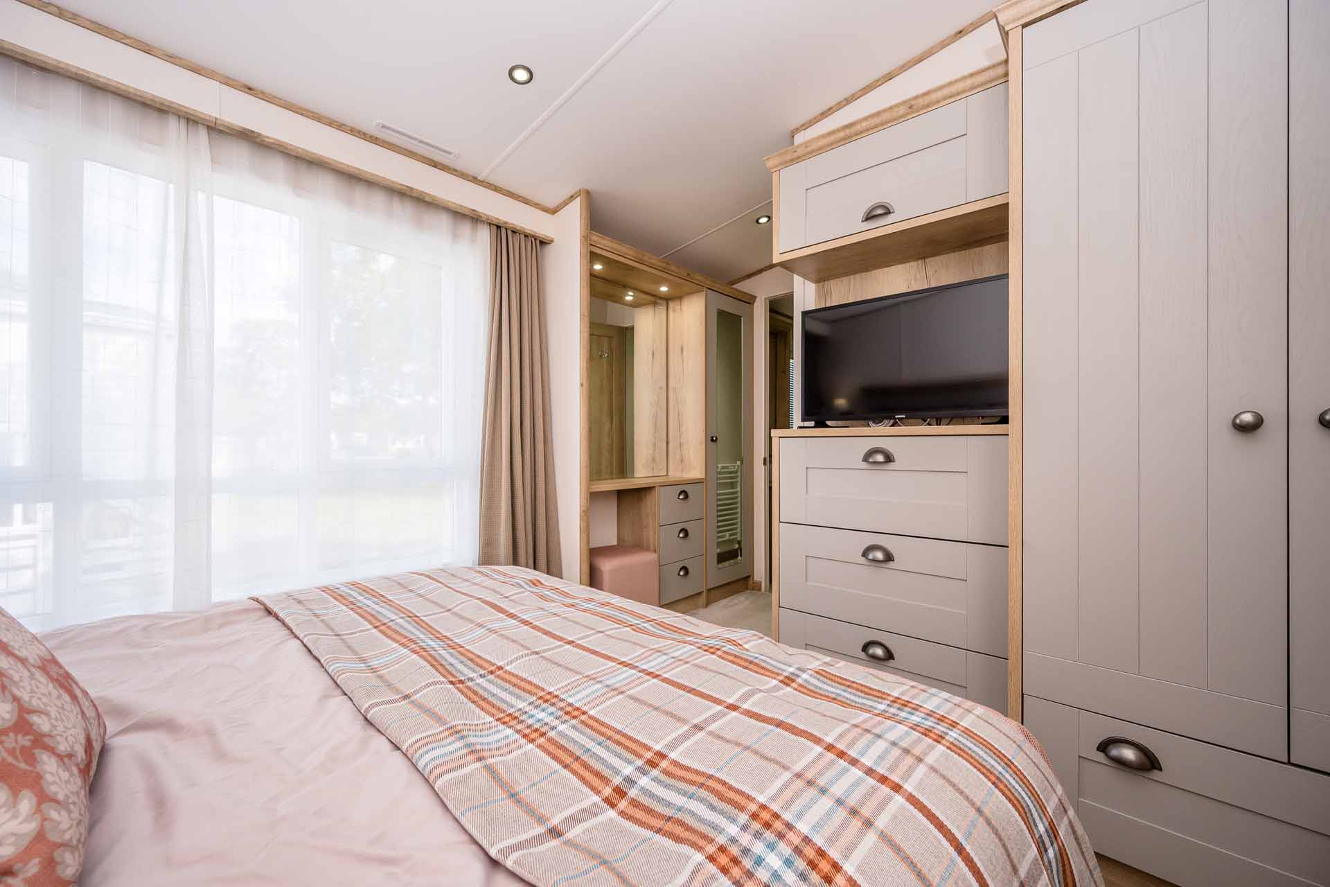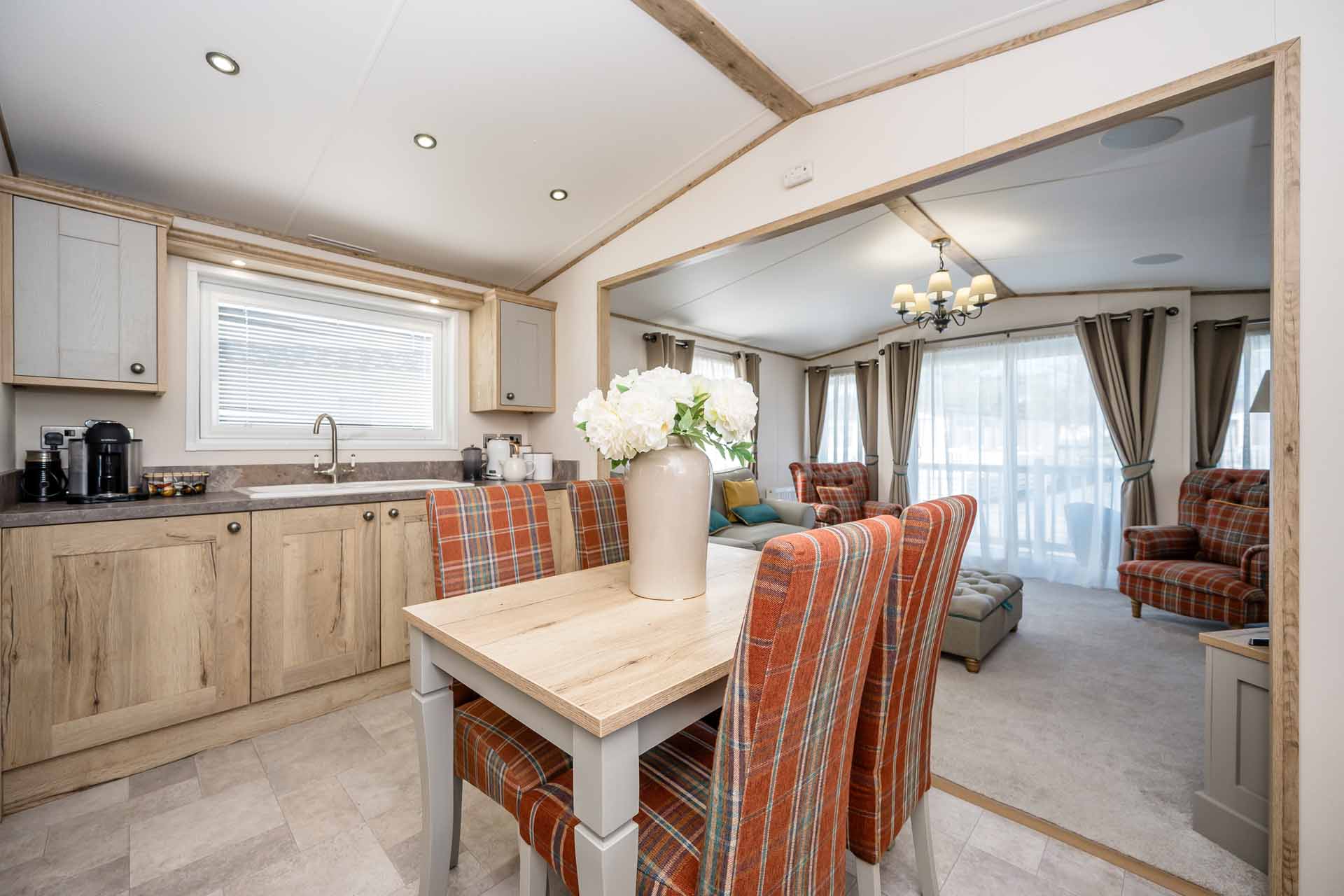 The lounge is both comfortable and stylish, set around an electric log burner style fire for you to enjoy relaxing in your holiday home.