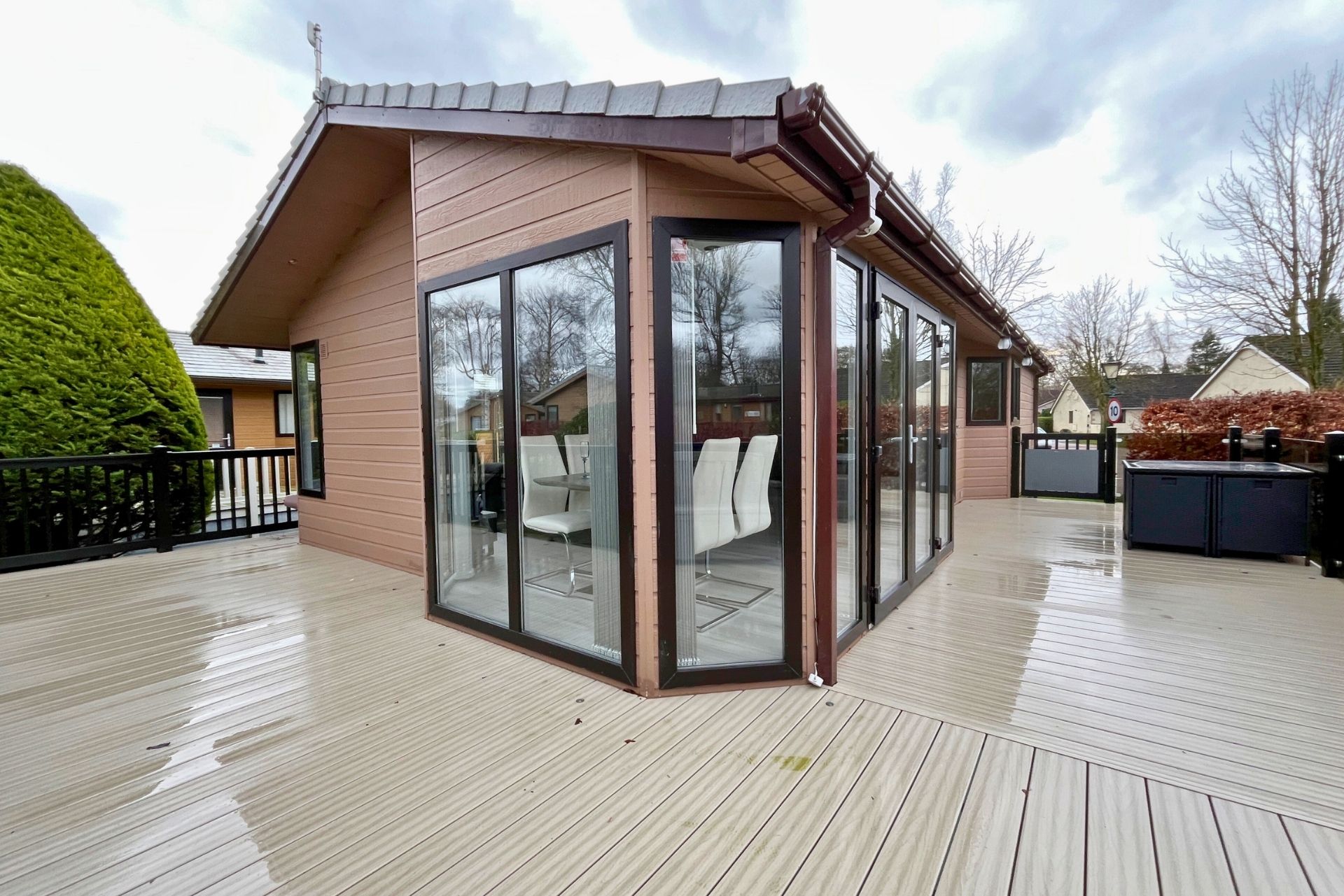 This stunning Arcabo glass house truly lives up to its name, with an abundance of floor-to-ceiling windows flooding the lodge with natural light and elegant bay windows adding real character. Situated on the executive area of the village, the lodge benefits from mains gas and a prime position that is conveniently close to the facilities, while still offering a wonderful sense of privacy surrounded by greenery. A particularly rare and desirable feature is the lodge’s own private garden area.