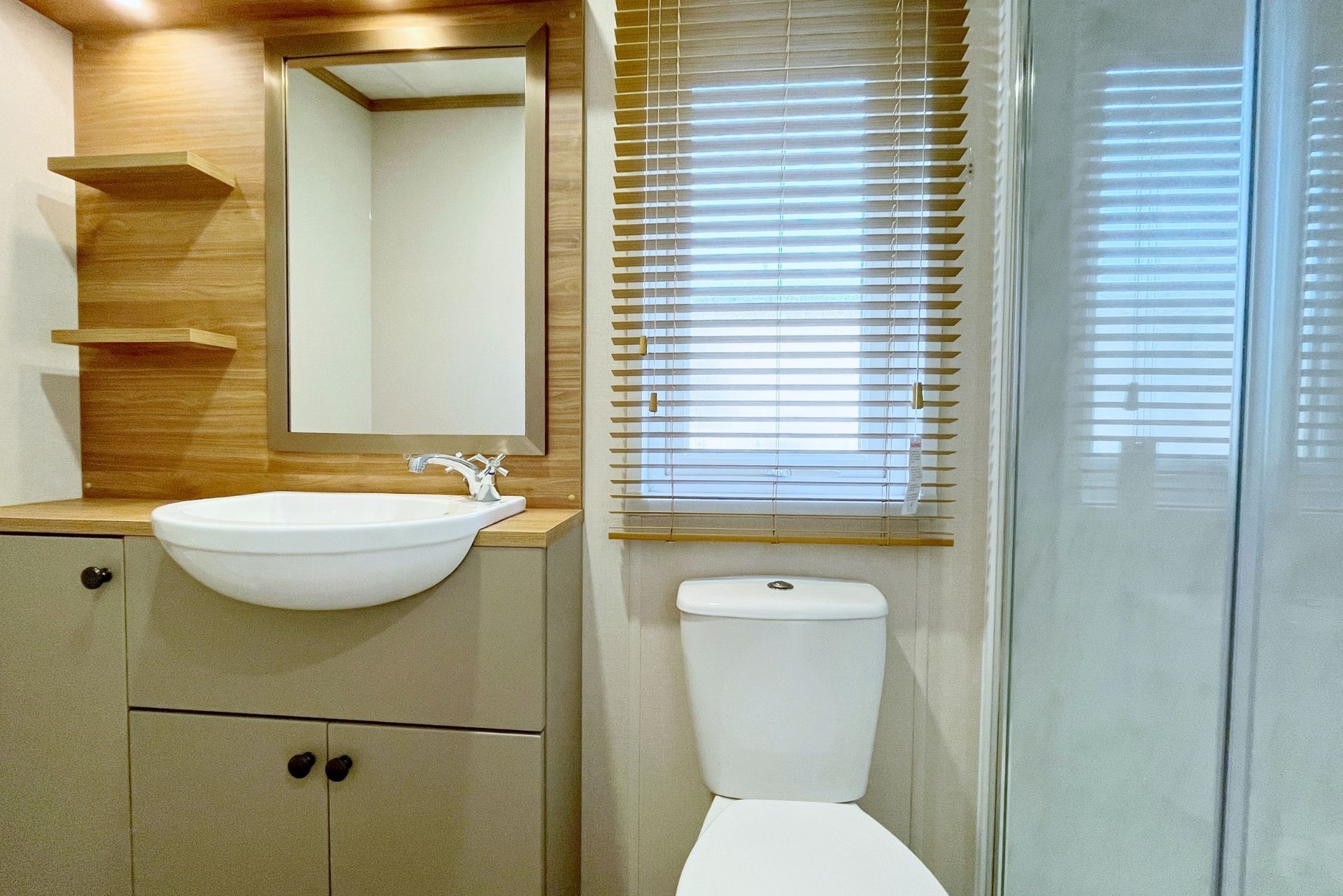 Tranquil Bedrooms & Bathroom: The principal bedroom boasts natural light, a 5ft bed, and ample storage, while the second bedroom offers twin beds. The family bathroom includes a shower, WC, and vanity sink, providing both style and practicality.