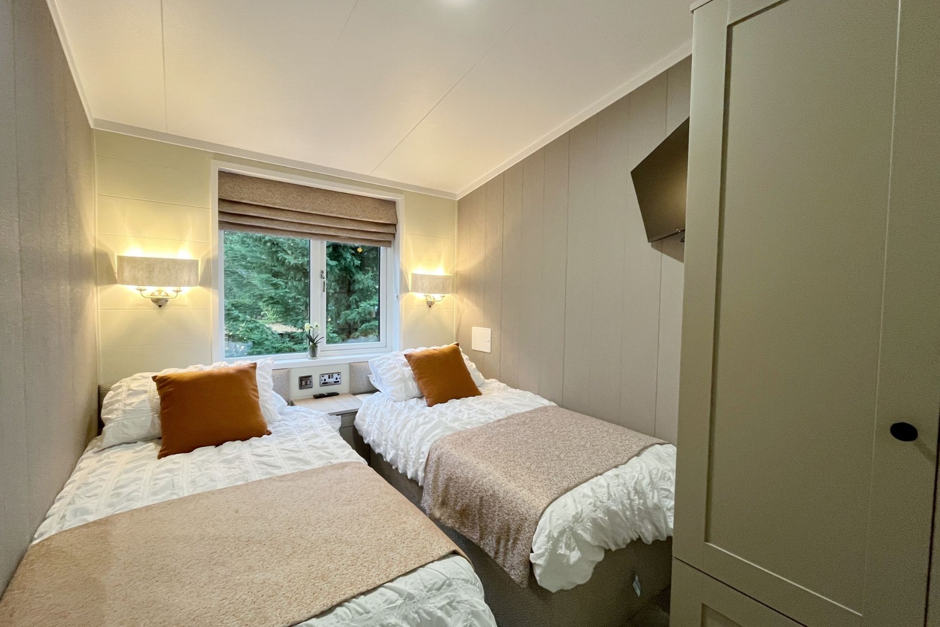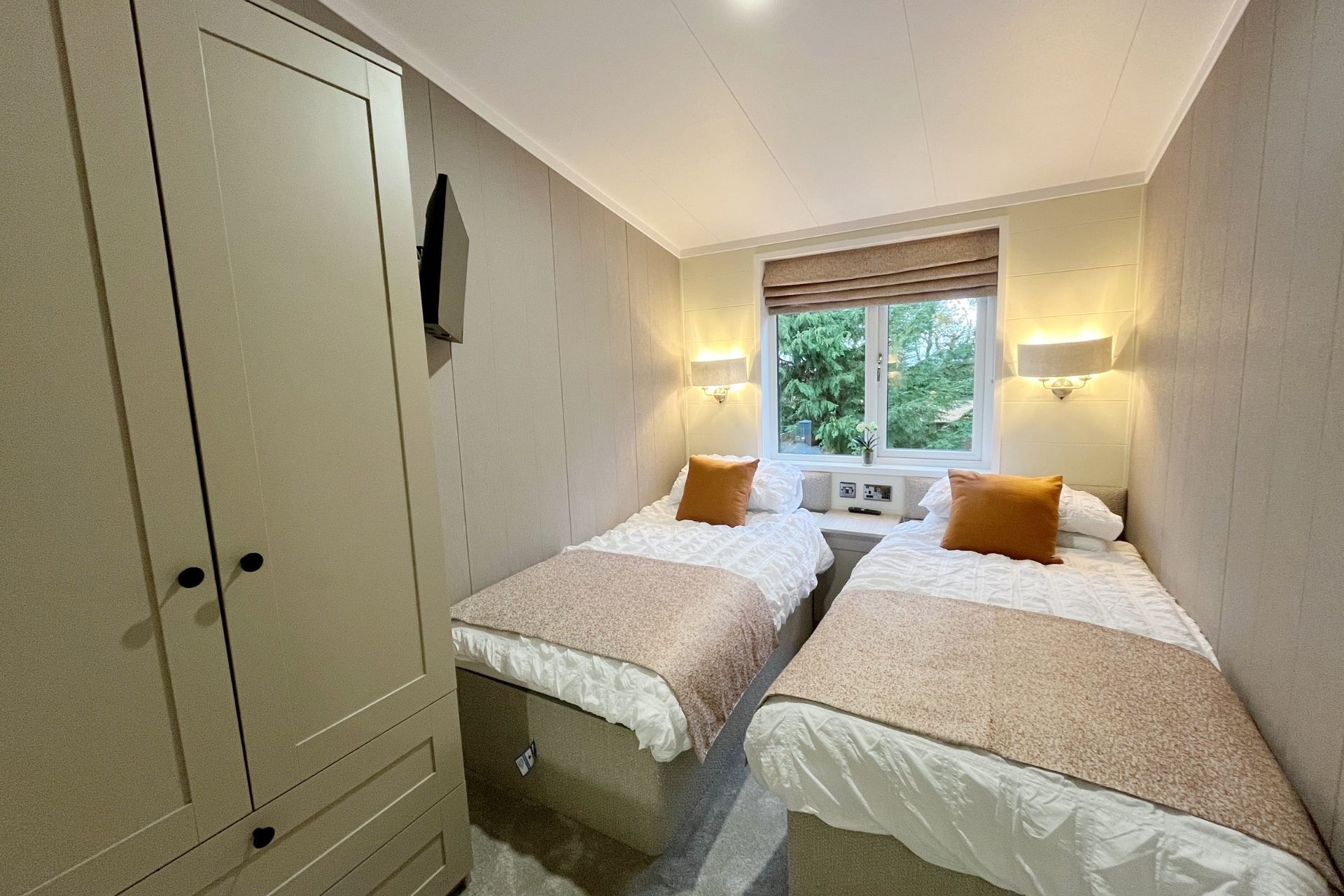 The two twin bedrooms each enjoy leafy green views and include twin beds, wardrobes and their own televisions. The main bathroom is equally impressive, offering a bath with shower over, WC and vanity unit, all finished to a high standard.