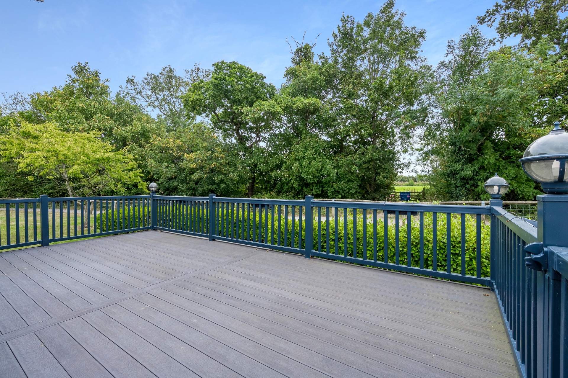 Generous outdoor living space – With a large wrap around decking overlooking the woodland trail to the rear.